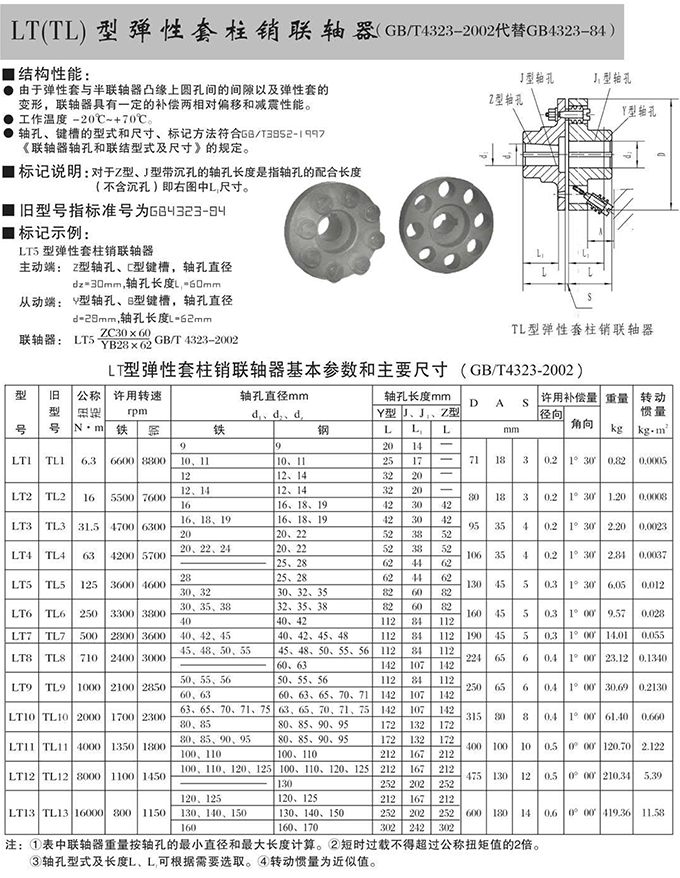 瑞安市寶德隆機械配件有限公司提供LT(TL)型彈性套柱銷聯(lián)軸器具有拆裝方便,快速安裝等特點,廣泛用于連接/固定輪轂孔和零件的軸,例如齒輪,錐齒輪,鏈輪,葉輪,凸輪,皮帶輪和飛輪等軸的聯(lián)結(jié)固定,咨詢電話:18906872378
