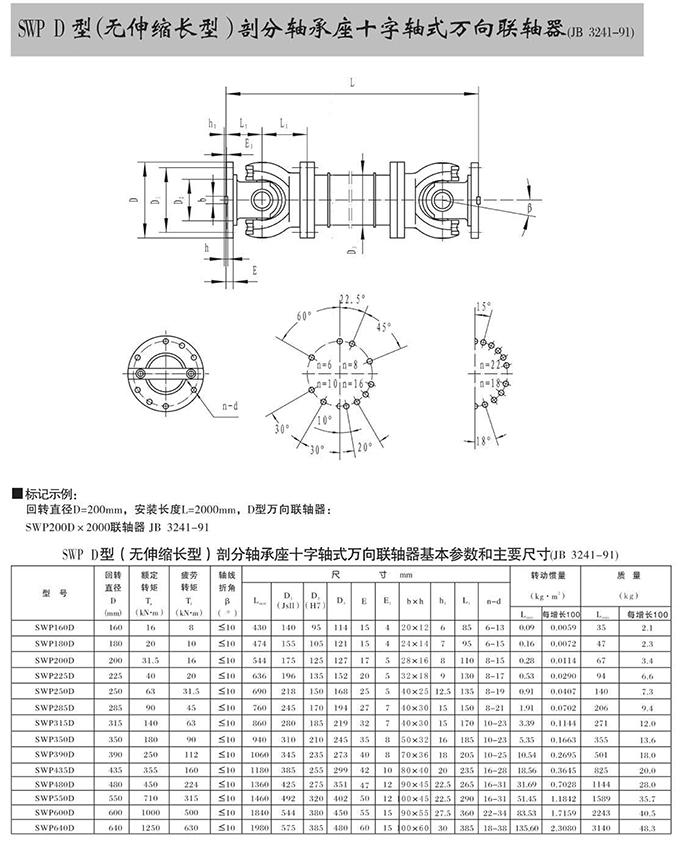 瑞安市寶德隆機械配件有限公司提供SWP D型(無伸縮長型)部分軸承座十字軸式萬向聯(lián)軸器具有拆裝方便,快速安裝等特點,廣泛用于連接/固定輪轂孔和零件的軸,例如齒輪,錐齒輪,鏈輪,葉輪,凸輪,皮帶輪和飛輪等軸的聯(lián)結固定,咨詢電話:18906872378