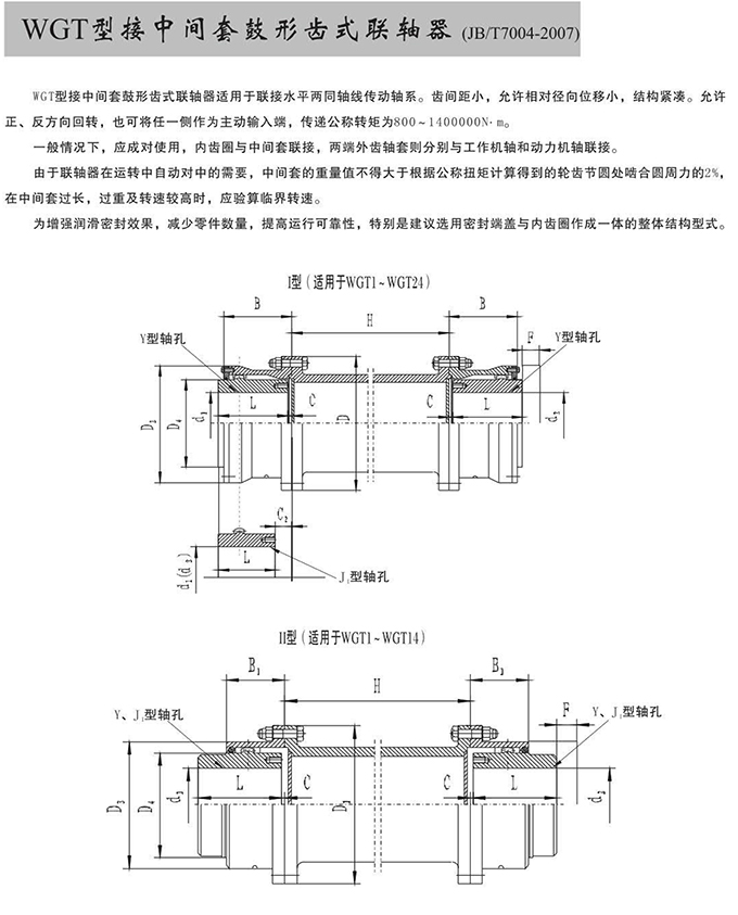 瑞安市寶德隆機(jī)械配件有限公司提供WGT型接中間套鼓形齒式聯(lián)軸器具有拆裝方便,快速安裝等特點(diǎn),廣泛用于連接/固定輪轂孔和零件的軸,例如齒輪,錐齒輪,鏈輪,葉輪,凸輪,皮帶輪和飛輪等軸的聯(lián)結(jié)固定,咨詢電話:18906872378